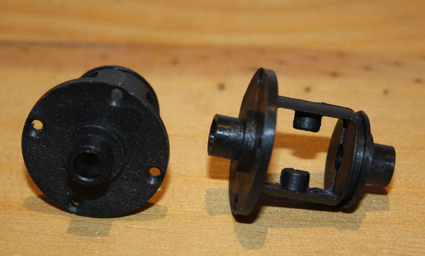 Der Differential Käfig aus Kunststoff mit den Kegelzahnräder aus Messinguss wird fertig montiert geliefert ( Art. Nr. 020586 ) der Zahnkranz muß noch mit 4 Senkkopfschrauben montiert werden.